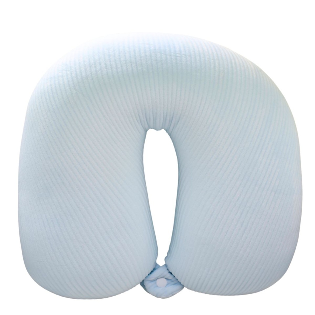 Almohada de viaje celeste con relleno de microesferas.Medidas: 29x29cm.Tela de fibra suave.Botón delantero para evitar que se pierda.Con su relleno de microesferas Se moldean a la forma de tu cuello y cabeza, proporcionando un soporte ergonómico que alivia la presión.