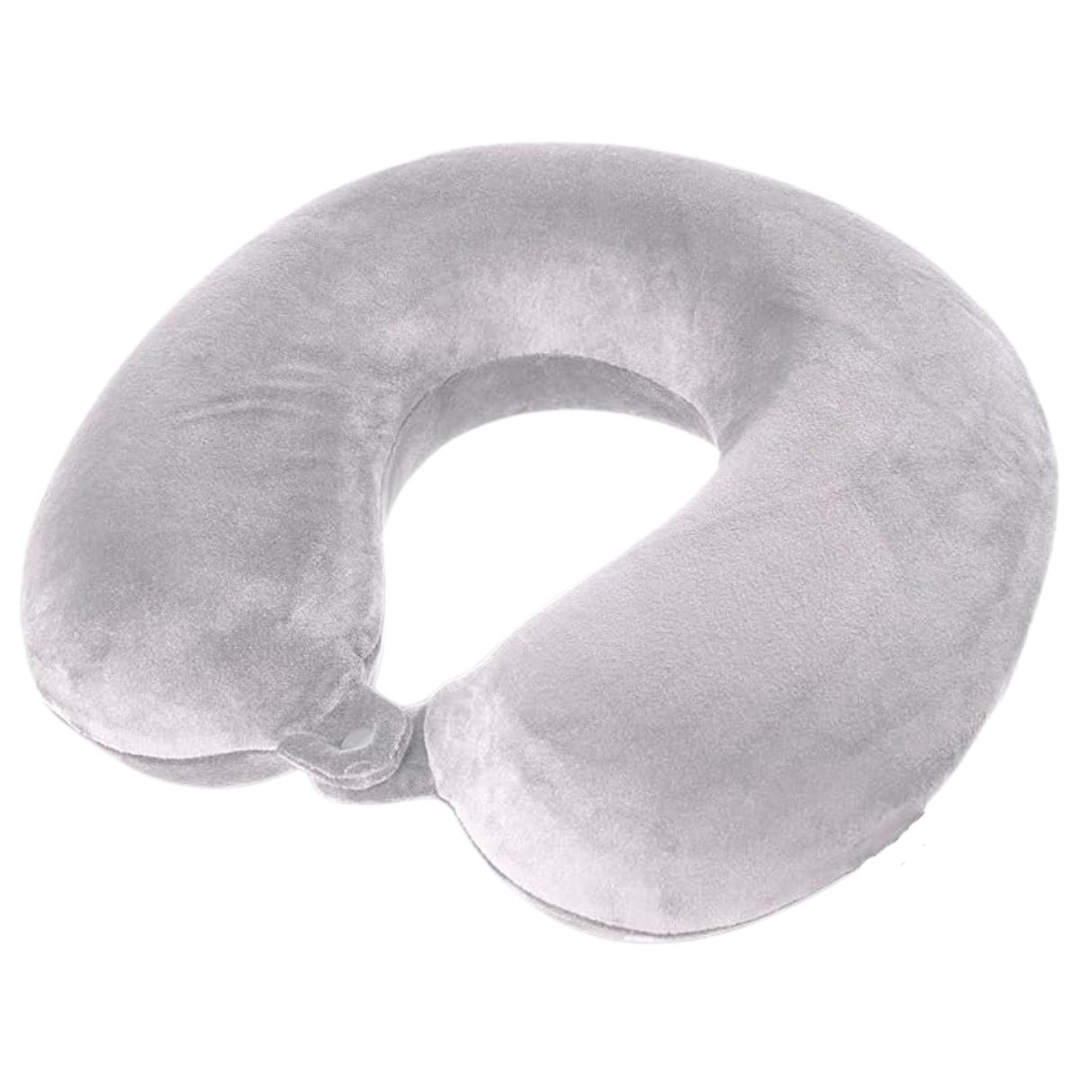 Almohada de viaje gris de espuma viscoelásticaBotón delantero para evitar que se pierda.Medidas: 30x26cm.Relleno de espuma viscoelástica, diseñada para ofrecer el máximo confort, se adapta perfectamente a la forma de tu cuello, brindando el soporte necesario.Tela de fibra suave.Color: gris.