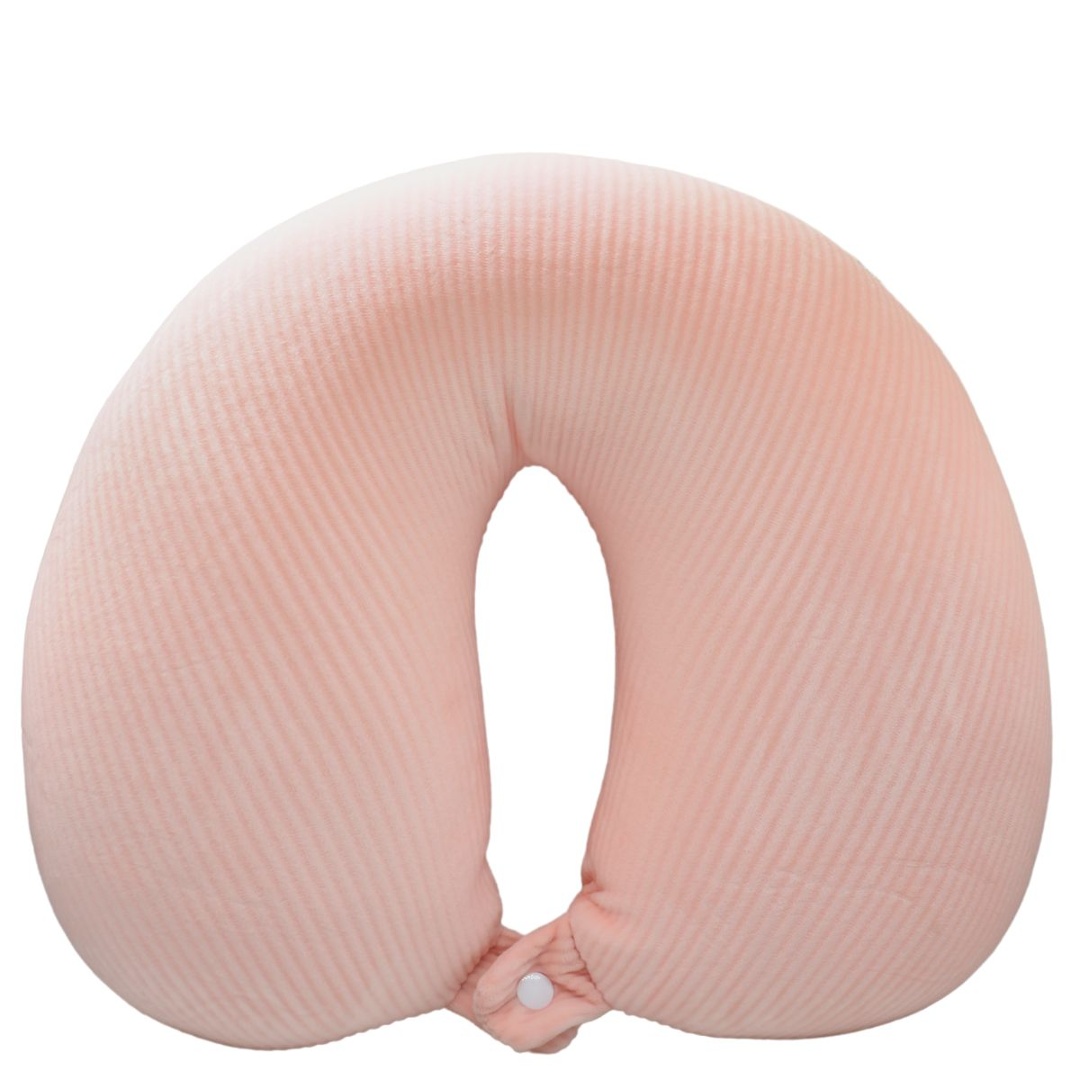 Almohada de viaje rosa con relleno de microesferas.Medidas: 29x29cm.Tela de fibra suave.Botón delantero para evitar que se pierda.Con su relleno de microesferas Se moldean a la forma de tu cuello y cabeza, proporcionando un soporte ergonómico que alivia la presión.