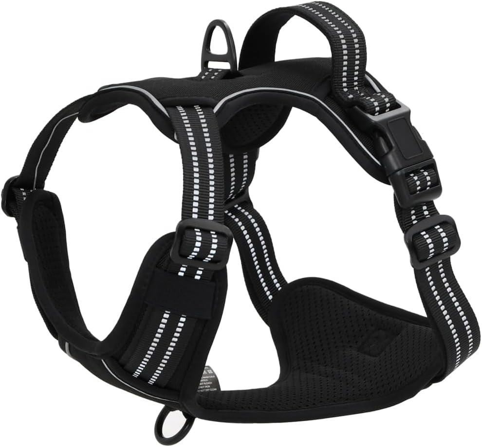 Arnés ajustable para mascotas.Talle: XL.Circunferencia del cuello: 58-89 cm.Contorno de pecho: 53-96 cm.Color: negro.Tiras reflectantes.Asa de seguridad superior.Cuenta con 4 correas ajustables para lograr un ajuste perfecto en su crecimiento.Hecho de poliéster con interior acolchonado.