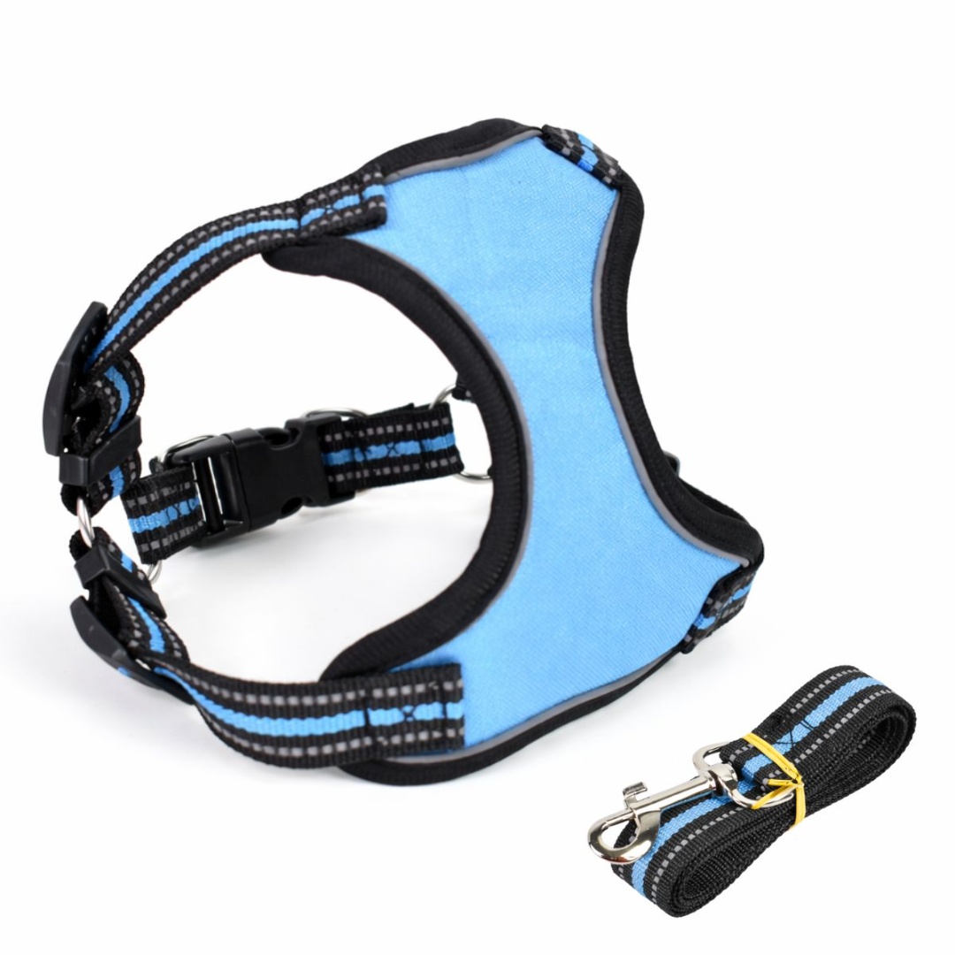 Arnés celeste con correa para mascotas.Largo de la correa: 1.2mts.Talle: XL Ajustable.Medidas aprox.: Pecho hasta 80cm.Arnés de nailon Oxford duradero y acolchado.Correas de nailon para un ajuste cómodo y duradero.Cuenta con bandas reflectantes que aumentan la visibilidad durante la noche o en condiciones de poca luz.