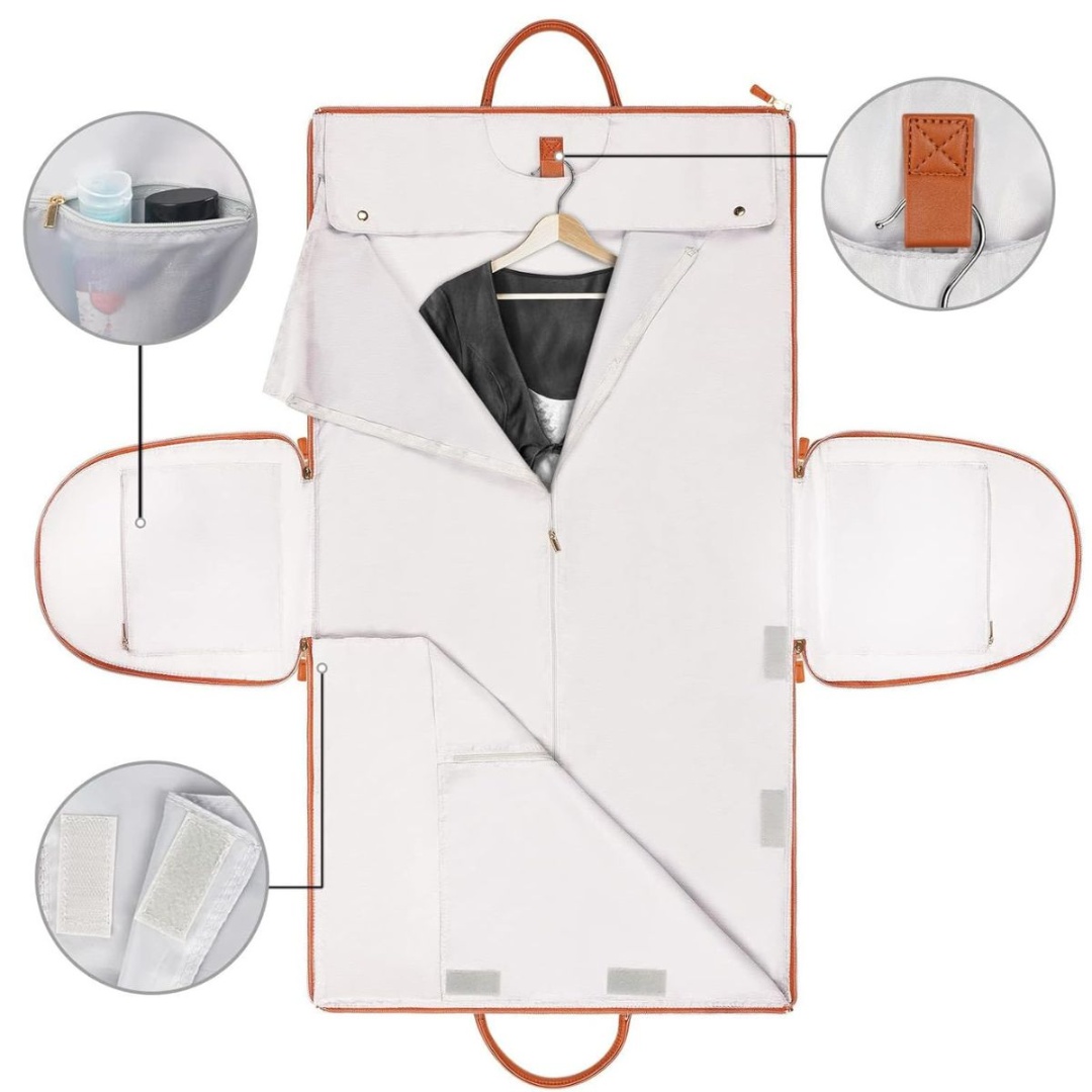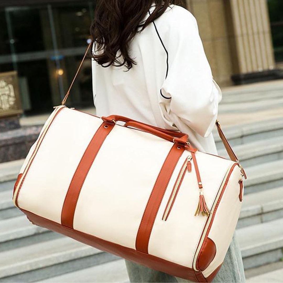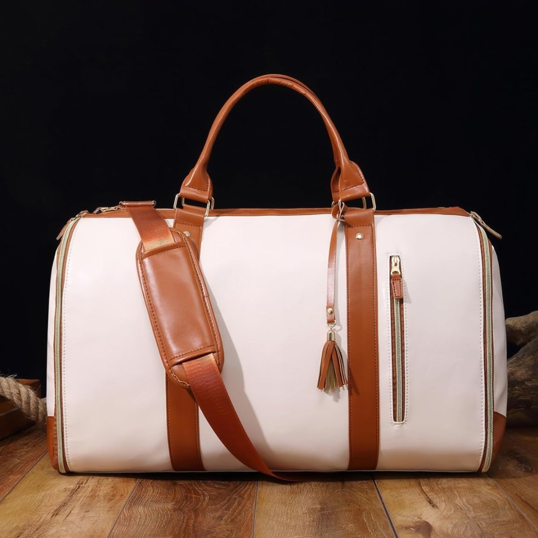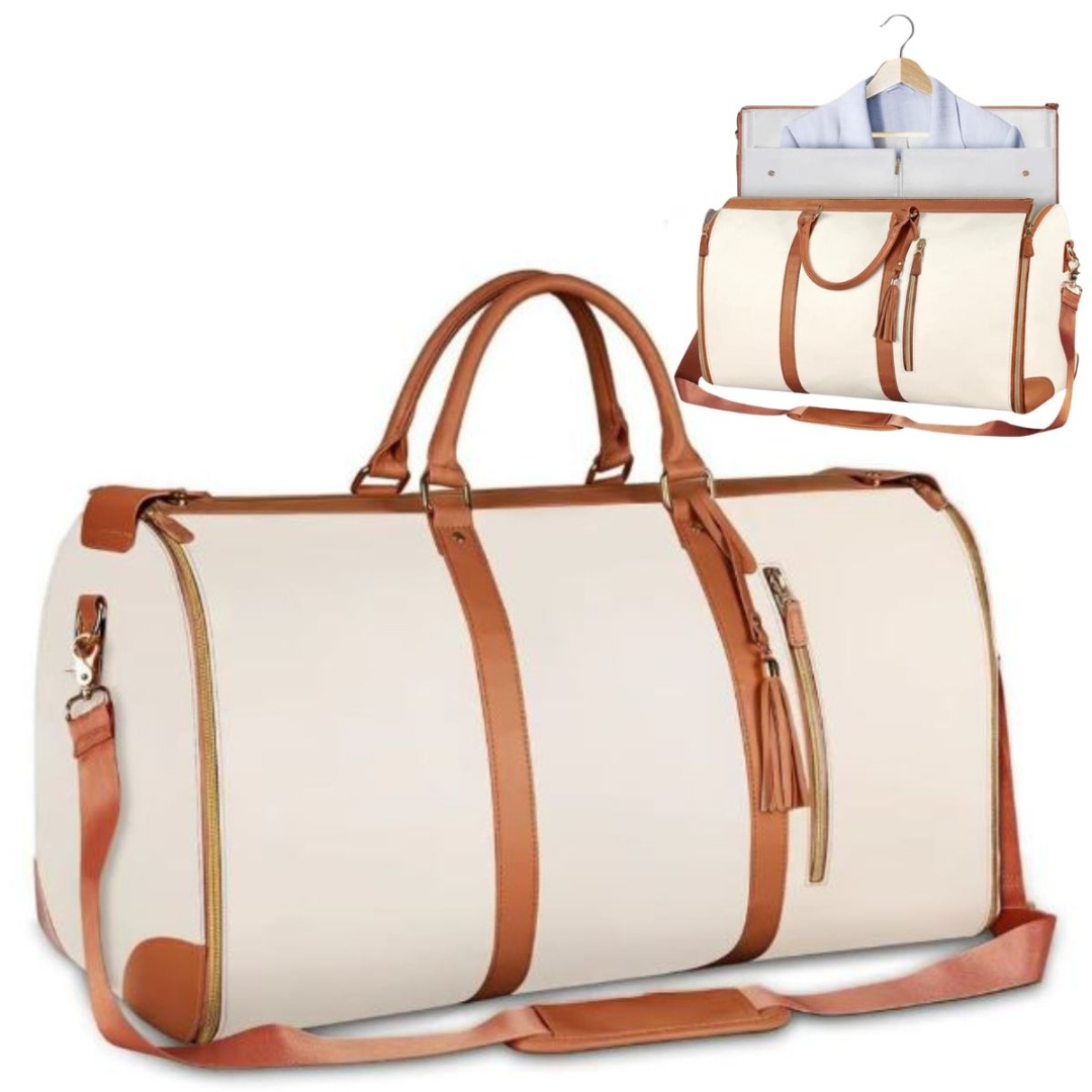 Bolso de viaje convertible.Medidas: 52x32x25cm.Color: Crema.Material: PUBolso plegable para ahorrar espacio, se despliega completamente para ordenar la ropa y cargarla de forma que no se arrugue. Se expande para contener grandes cantidades.Este bolso de viaje combina las características de un portatrajes, una mochila de viaje y un bolso de mano.Incluye correa colgante. Múltiples compartimentos y bolsillos, lo que te permite organizar y ordenar tus pertenencias.Forro interno con cierres  para evitar que la ropa se mueva y minimizar las arrugas.