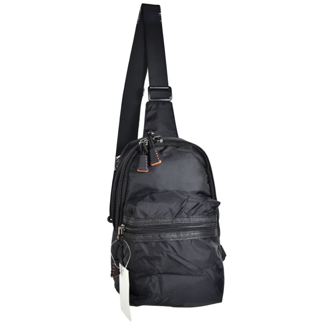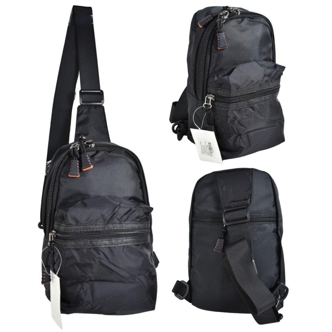 Bolso morral negro.Medidas: 28x18x8cm.Material: nailon.3 bolsillos con cierre.Correa ajustable, con gancho para cambiar la posición de izquierda a derecha.