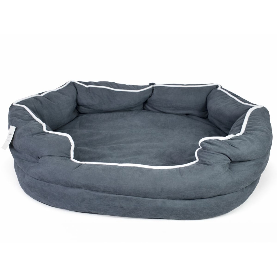 Cama para mascotas. Color: gris.Medidas: 70x60x20cm.Material: forro de tela.Bordes acolchonados de guata, colchón de espuma de 5cm.Base con cierre para remover el colchón.