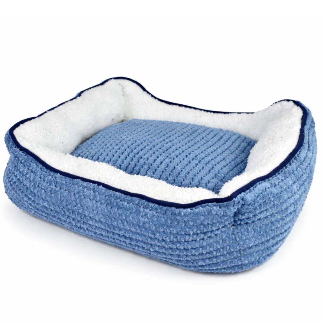 Camas para mascotas x3 unidades. Color: Azul.Medidas: 44x35x10cm. / 54x44x12cm. / 67x53x14cm.Material: forro de poliéster chenille suave, bordes de corderito acolchonado. Interior de guata.Almohadón extraíble.