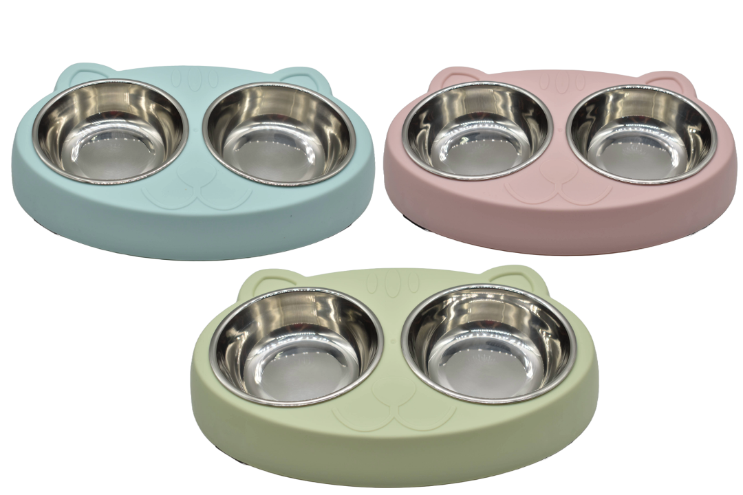 Comedero bebedero con platos de metal para mascota.Medidas: 26x15x4cm.Material: plástico con platos de metal, desmontables. Color: rosado, verde, celeste. *SUJETOS A DISPONIBILIDAD DE STOCK*