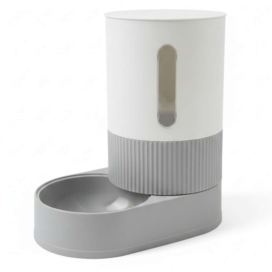 Comedero dispensador para mascotas.Medidas: 25x22x14cm.Diseñados para proporcionar un suministro constante de alimento. Tiene una ventana transparente para controlar fácilmente la cantidad.Material: plástico.