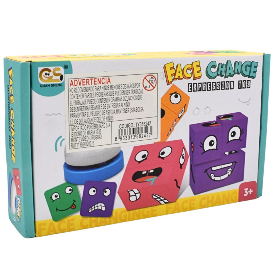 Cubos de expresiones faciales intercambiables.Presentación: caja.Medidas aproximadas del empaque: 19x11cm.