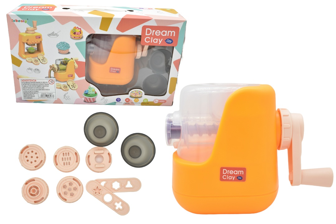 Juego de masas de moldear máquina.Medidas de la caja: 32x18x8cm.Medidas de la máquina: 10x11m.Incluye maquina, maquina, masas de moldear de colores y formas en moldes.