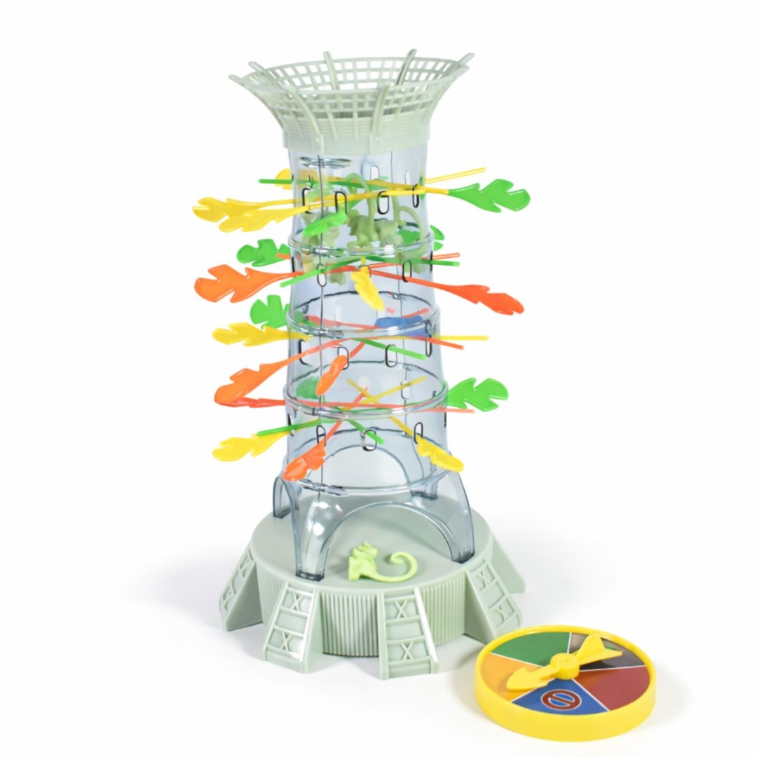 Juego de mesa rescata al dinosaurio.Objetivo: Los jugadores deben quitar palos de colores de la torre sin dejar que los dinosaurios se caigan.Incluye una torre, palos de colores, figuras de dinosaurios y ruleta.Medidas de la torre: 23x14cm.En caja.