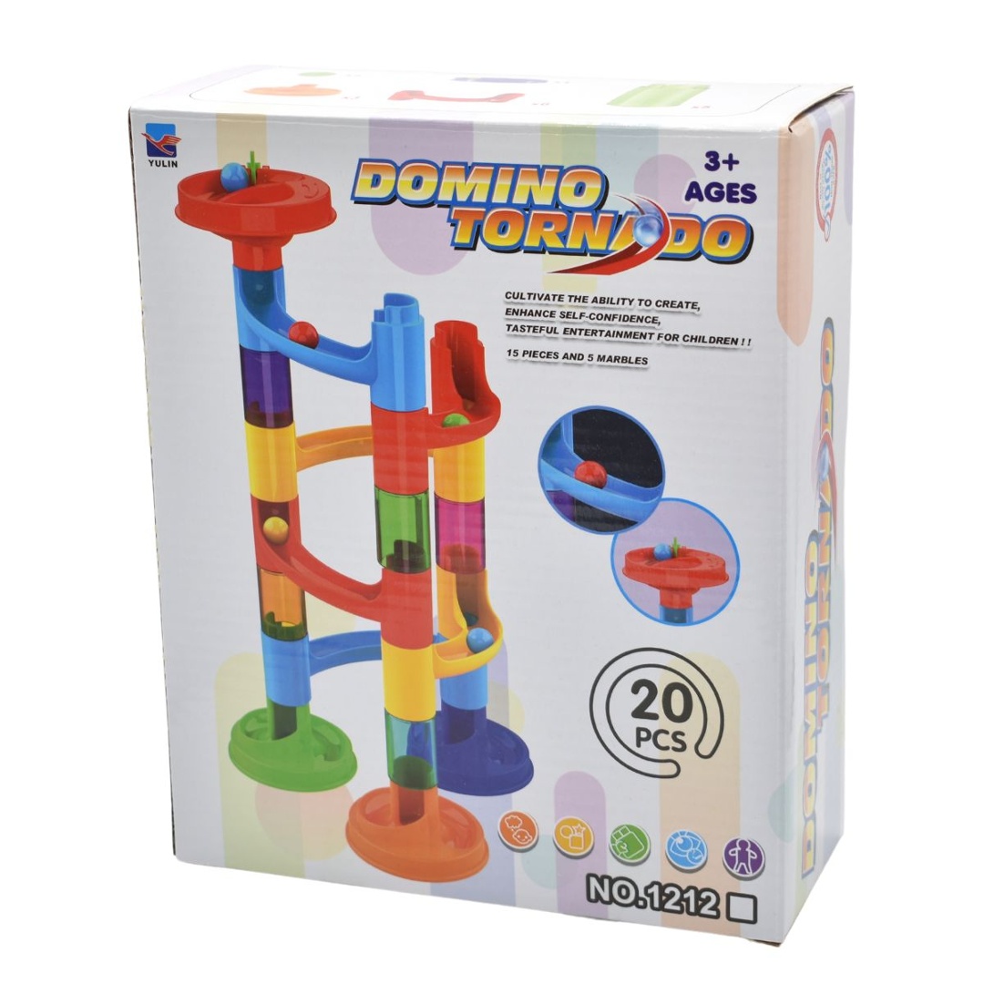 Juego dominó tornado con bolas.Medidas del juego armado: 18x33cm.Incluye piezas de dominó y bolas.Material: plástico.Colorido.Contiene: 40pcs.En caja: 23x19x8cm.