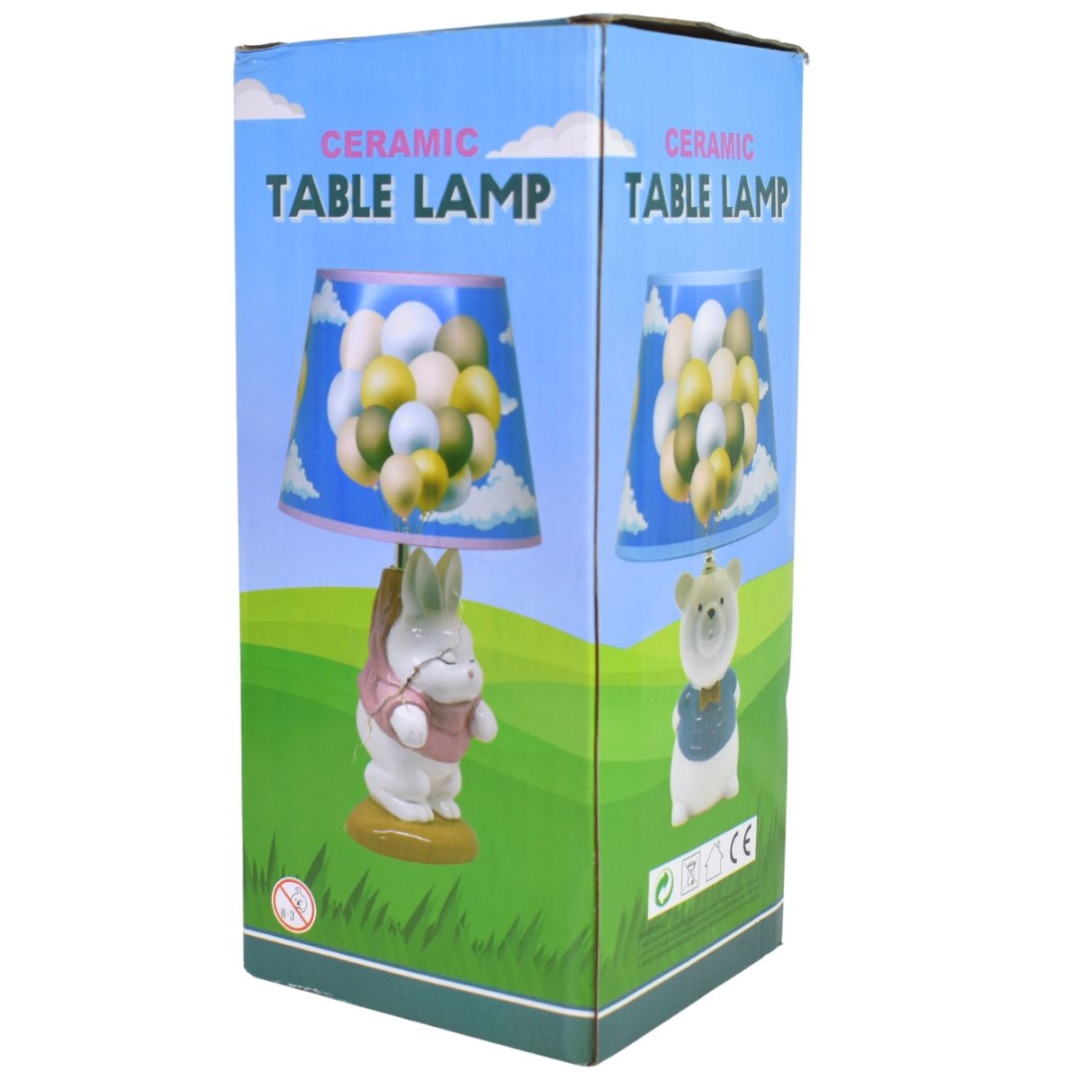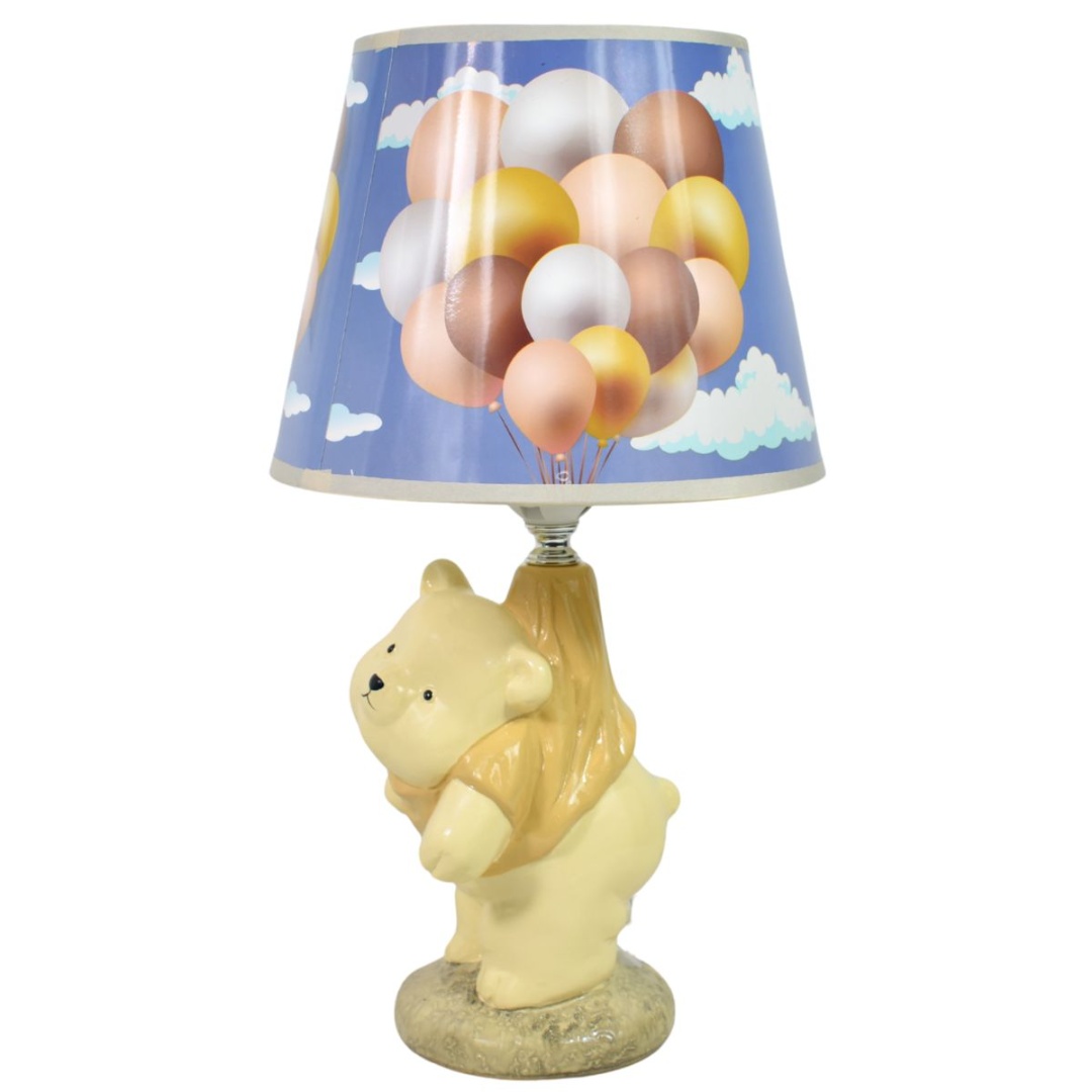 Lámpara de cerámica.Diseño: oso.Color: beige.Medidas: 37x20cm.Largo del cable: 120cm.Funciona conectada a la corriente eléctrica 220V.Tipo de lampara estándar (no incluida).En caja.