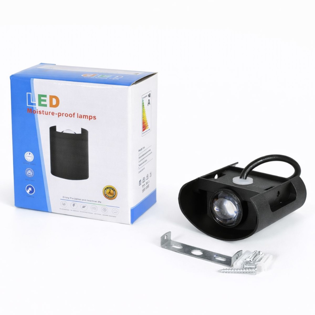 Luz LED de pared.Medidas: 7.5×7.5x4cm.2W.Eficiencia energética: AEn caja. Voltaje: 110-265V. 50/60Hz.Larga vida útil.Luz cálida.3000K.Apto para exteriores, ideal para fachadas, entradas y muros.Montaje: Incluye un soporte de montaje para su instalación en la pared.