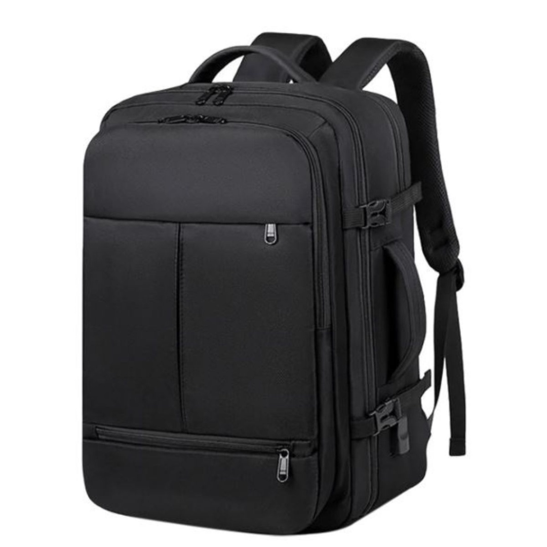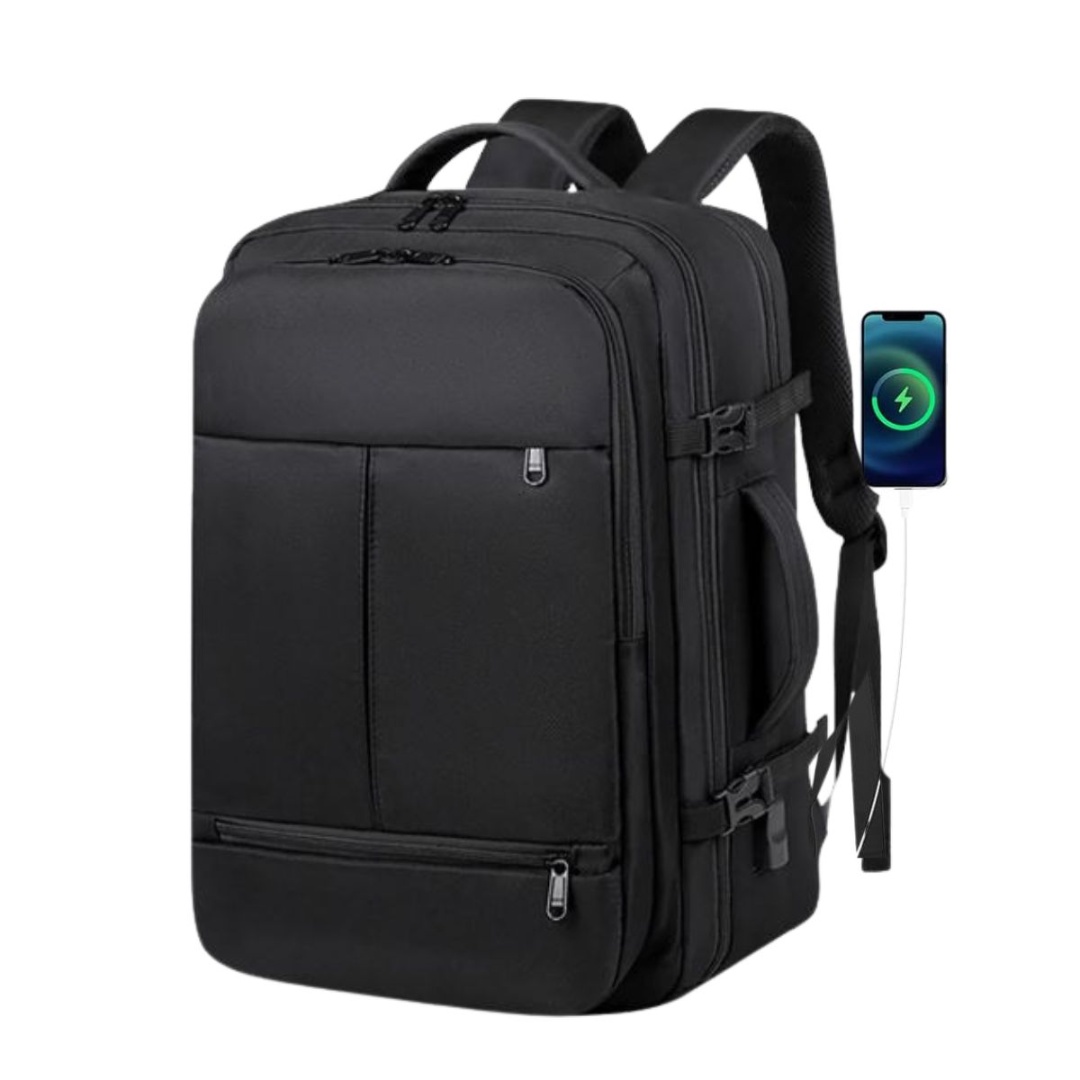 Mochila de viaje impermeable.Material: tela oxford.Medidas: 31x20x44cm.Color: negro.la mochila para viaje tiene muchos compartimentos y bolsillos. Puedes dividir tu ropa y tus artículos electrónicos.Tiene además un bolsillo de separación seco/húmedo para evitar que artículos mojados o humedos toquen otras prendas y dispositivos electrónicos.Cuenta con una apertura de cierres de 180º para que sea más fácil organizar los artículos y un asa lateral para cargar. Cuenta con conexión para power bank, incluye cable USB (NO INCLUYE POWER BANK).Material Oxford impermeable, bolsa impermeable interna para proteger tus productos del agua. costuras de línea reforzadas para que sea más resistente, son cómodas para llevar mucho tiempo.