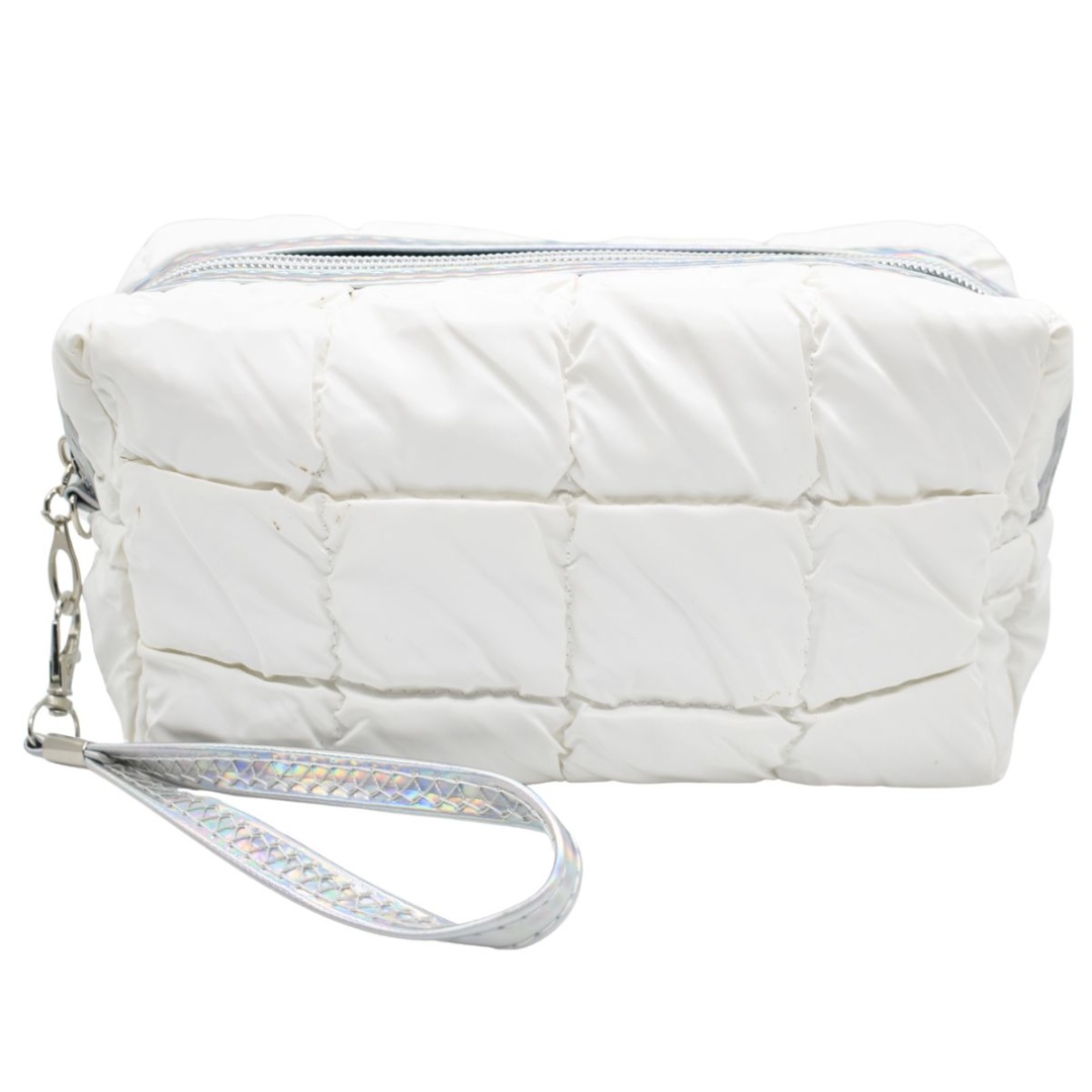 Neceser capitoneado de nailon blanco.Medidas: 20x10x6cm.Multiusos: estuche, porta cosméticos, cartuchera.