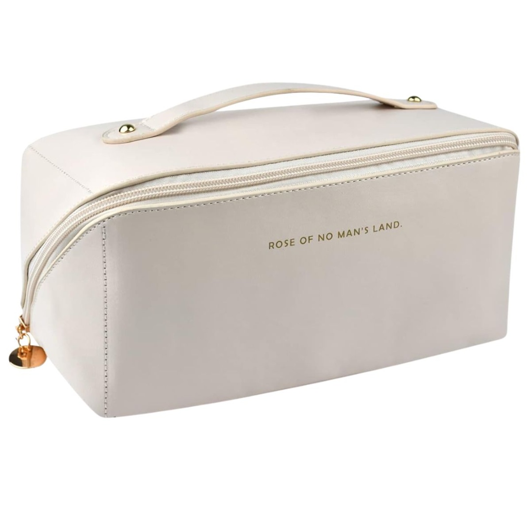 Organizador porta cosméticos.Medidas: 23x11x10.5cm.Color: Blanco.Material: cuero sintético PU. Con separaciones internas y gran capacidad de almacenamiento.Abertura completa para mayor comodidad y organización.