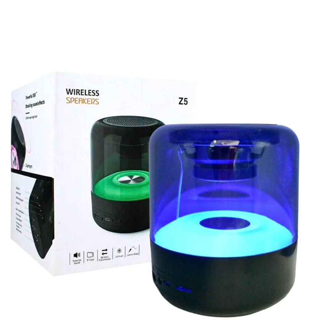 Parlante portátil con luz.Medidas aproximadas del producto: 14 x 11.5 cm.Versión BT: 5.0Alcance: 10mts.Altavoz: 102mmPotencia: 5W.Tiempo de carga: 3hs.Tiempo de actividad: más de 4 horas.Cambia el color de la luz con botón de encendido.Inalámbrico: incluye cable USB de carga.Conexión: bluetooth / USB / MICRO SD / Entrada de cable audio.Botón de: encendido, modo, volumen / adelantar, retroceder.