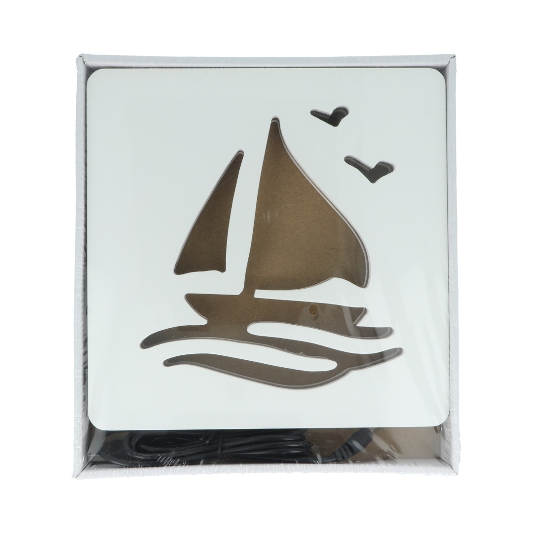 Veladora led barco de madera.Medidas aproximadas del producto: 20 x 20 cm.Conexión por cable USB (incluído).